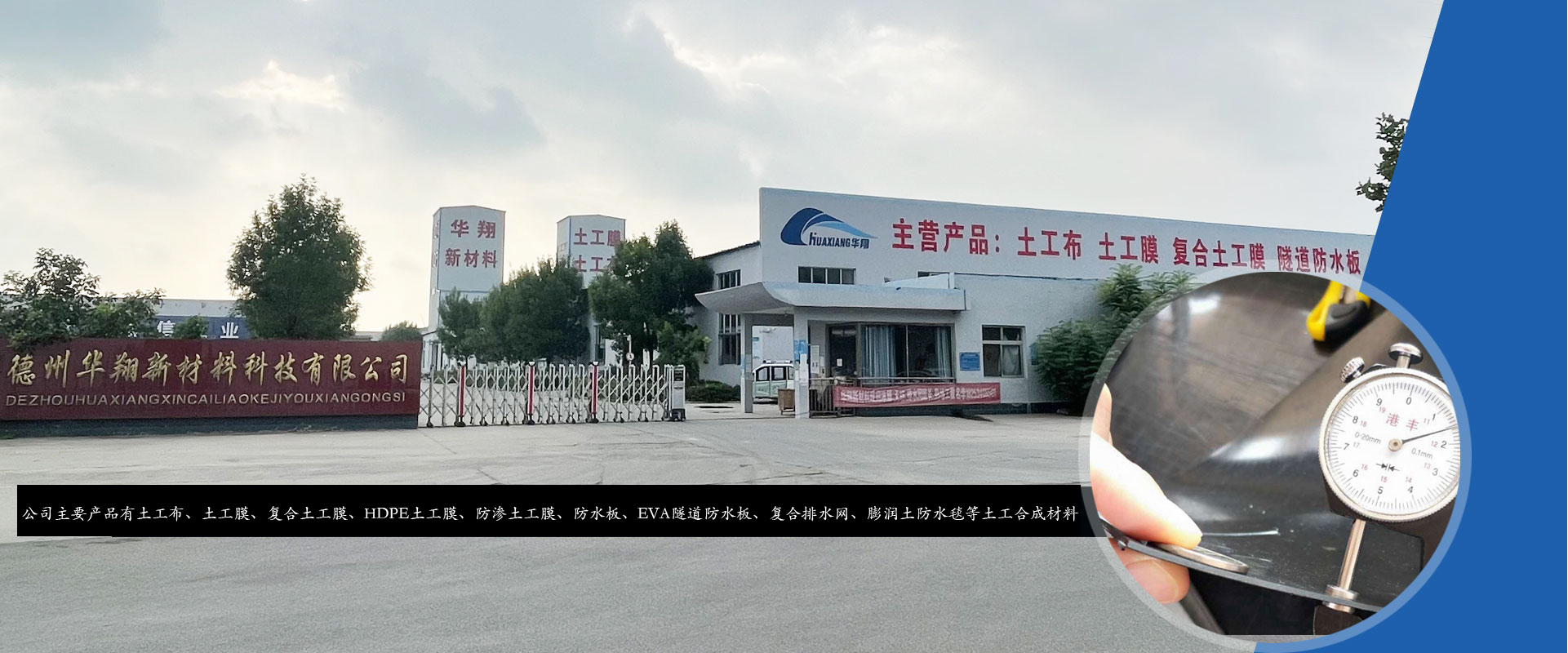 德州華翔新材料科技有限公司位于魯西北著名的歷史名城,西漢大文學(xué)家東方朔故里-德州市。公司占地50畝,現(xiàn)有員工100人,總投資5068萬元。主要生產(chǎn)設(shè)備由德國、意大利引進,是一家集土工材料、地毯生產(chǎn)、科研、開發(fā)于一體的大型骨干企業(yè)。 華翔公司始終認(rèn)為為顧客創(chuàng)造價值,讓顧客的工程更優(yōu)秀,是我們永遠的責(zé)任。公司主要產(chǎn)品有地毯、長(短)絲無紡布、HDPE土工膜、LDPE土工膜、EVA隧道防水板、土工膜、復(fù)...